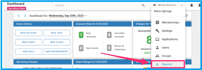 Or you can navigate to the report through your Reports tab. Start by navigating to the report menu: