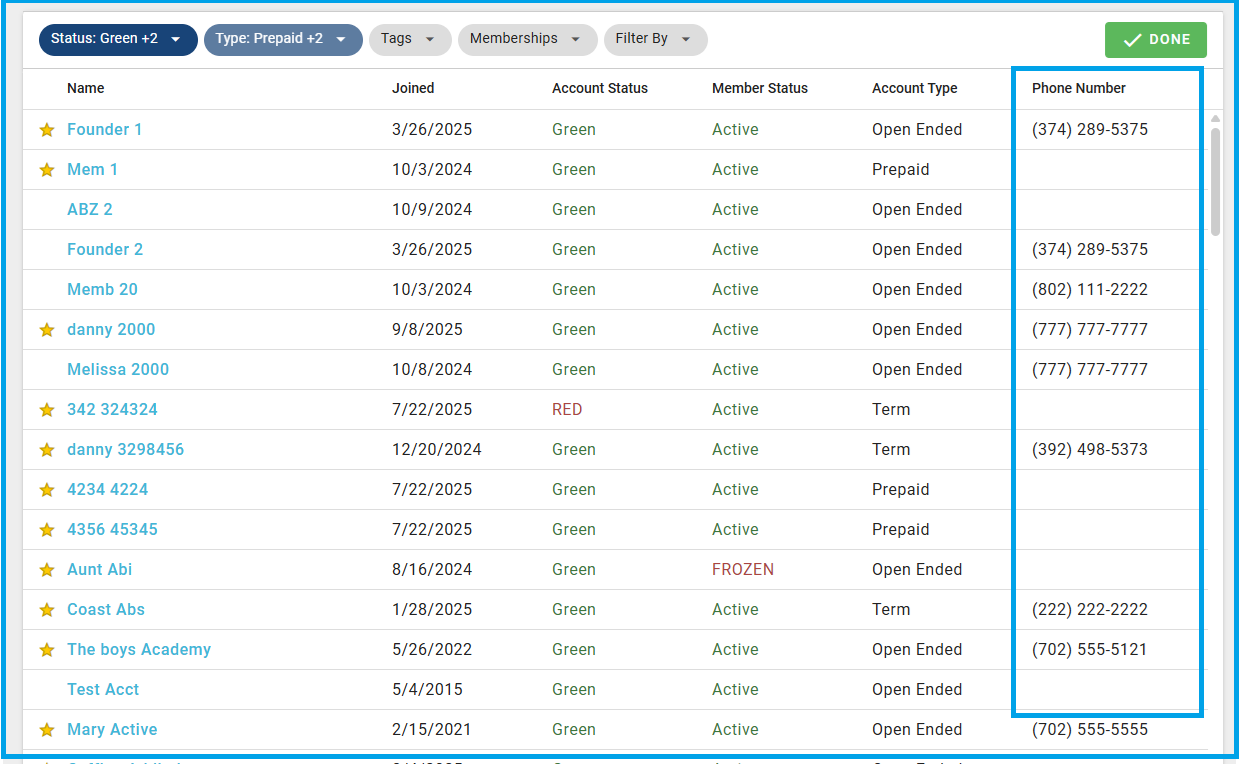 With Gym Insight it’s easy to get a comprehensive list of phone numbers: home phone, cell phone, and work phone. Oftentimes times this list is needed for a member calling campaign.