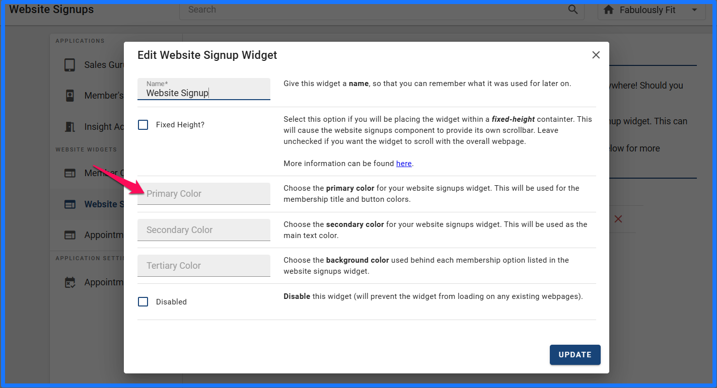 Click the edit pencil next to your Website Signup Link. Then start choosing your colors.