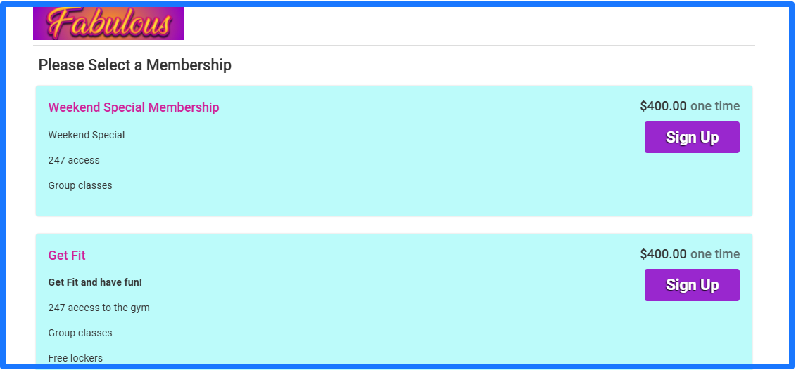 NOTE: Only memberships that are set to be seen on website signups will appear in the website signup widget. Be sure to check the box in the membership creation under Options, that says website sign up.