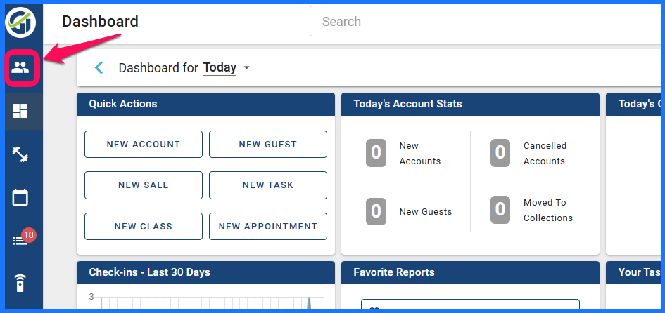 If you can’t find a member, you have the option of creating a new account or a new guest. You can also click on member list or guest list to search for the person.