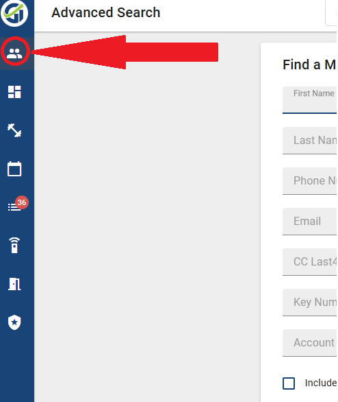 You can search for a member by name, phone number, key number, account number, email, or by using the last 4 digits of their credit card.