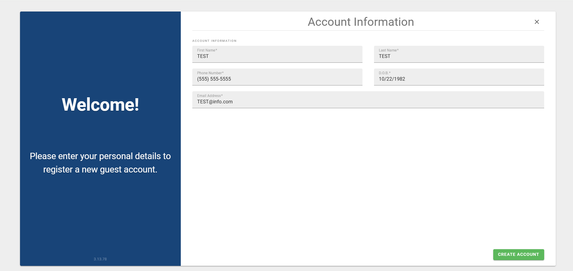 The first thing a guest member would have to do is enter their name, phone number, date of birth, and email address.