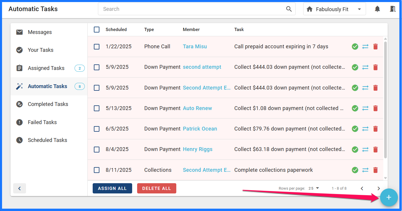 | Personal Trainer/Front Desk Can create and schedule a task for themselves ONLY | Manager/Supervisor Can create and schedule a task for ANY user | Owner Can create and schedule a task for ANY user |