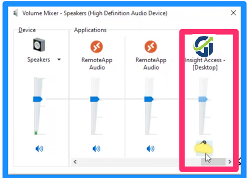 - Once you've found Insight Access, you'll see a speaker icon below its volume slider. Click on this button to mute all sounds from the application.