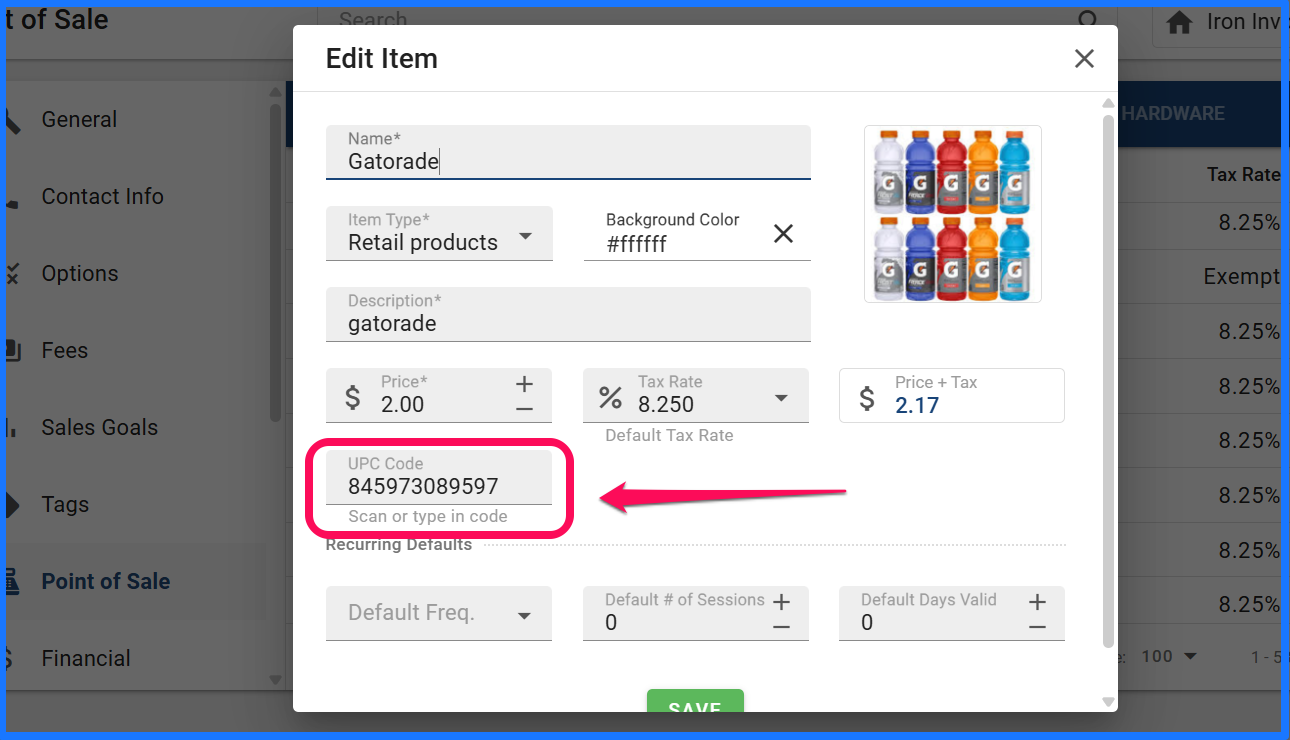 To add the UPC to an Item, either during item creation (KB Article 1) or by editing the item later, as illustrated in the above image. While you can hand enter the UPC field, you can also use the scanner to scan the UPC into the field with the Edit Item screen open for the Item you wish to add a UPC to.