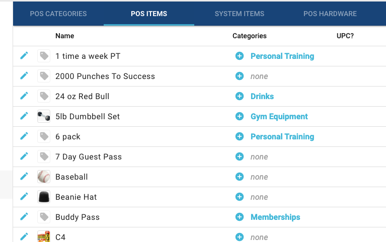 1A. If you already have items created in the system, categories can be assigned from the POS Items list by clicking the blue plus button next to the item, in the categories field. This will only select categories that have already been created for assignment.