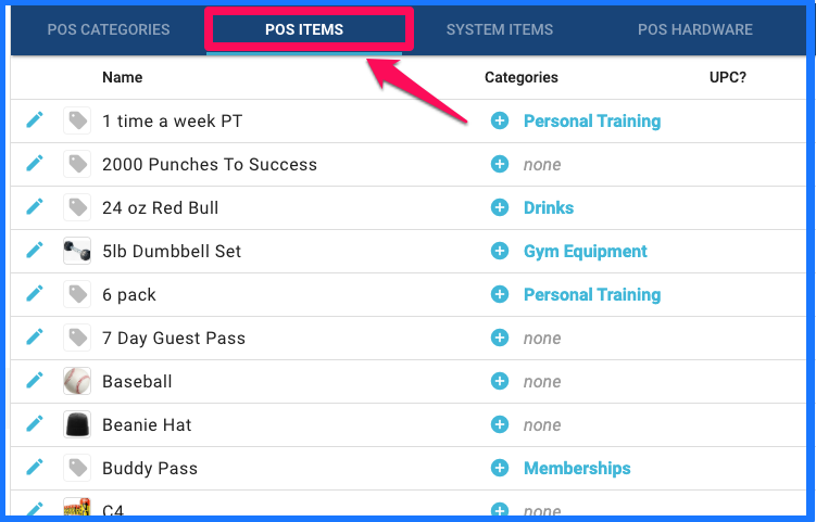 1A. If you already have items created in the system, categories can be assigned from the POS Items list by clicking the blue plus button next to the item, in the categories field. This will only select categories that have already been created for assignment.