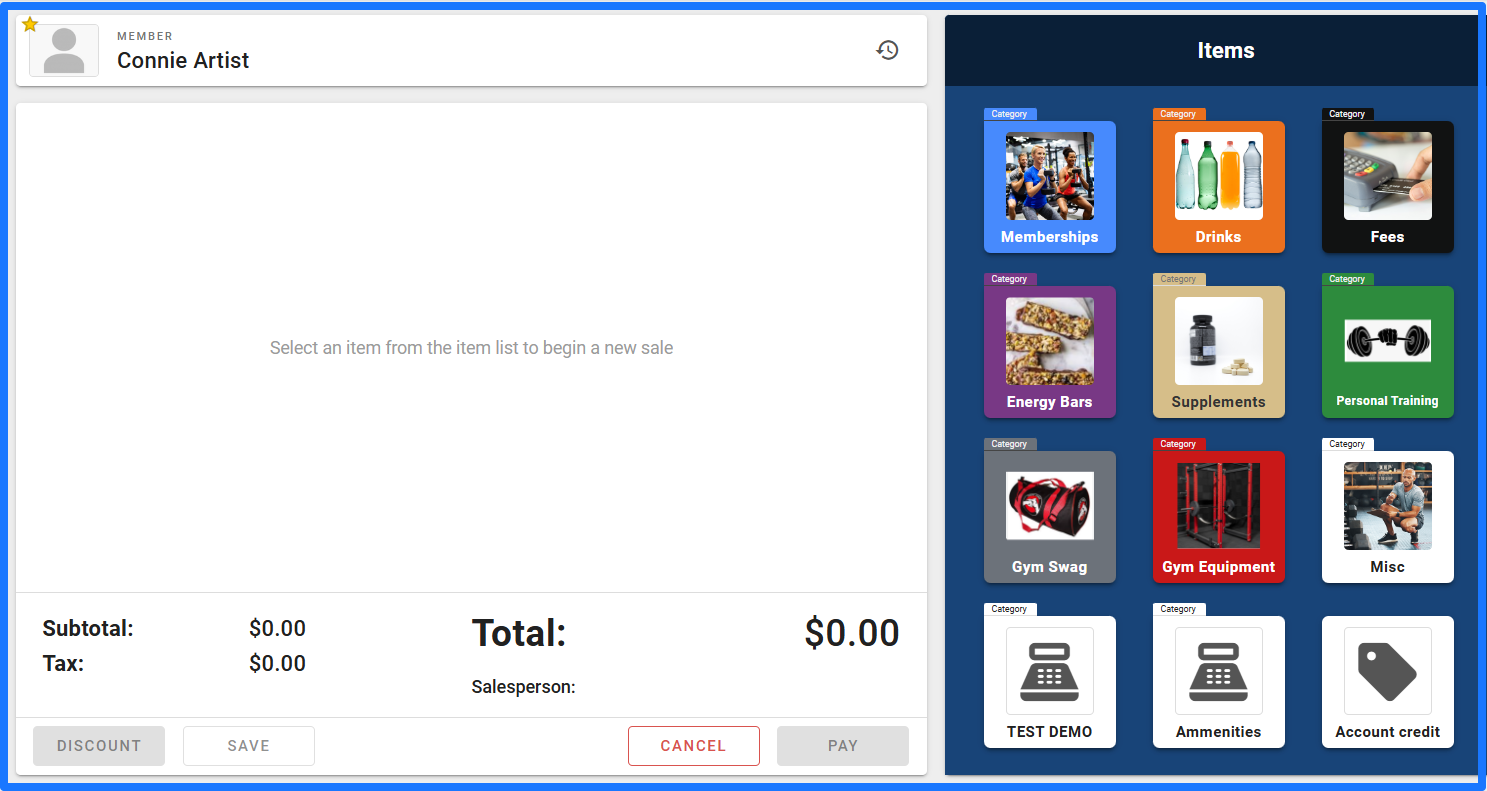 This will open your Point of Sale Screen and you can now select all the items you would like to sell to the member. You can also discount the entire invoice or just specific items as well.
