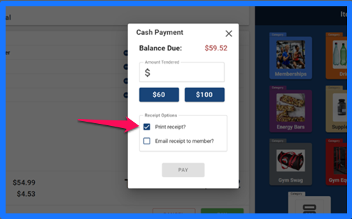 Choose a Payment Method. During checkout, you can choose whether to email/print the sales receipt.