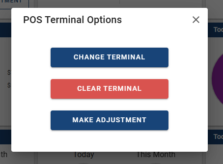 3. To Change the Terminal, select Change Terminal, to clear a terminal being attached select Clear Terminal, and to make and adjustment, we will select the make Adjustment button.